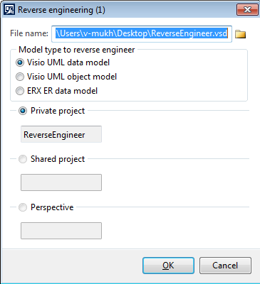 Select Visio UML data model or object model depending on the elements you have added to the project (Tables or Classes). Give appropriate path to save the Visio file to.