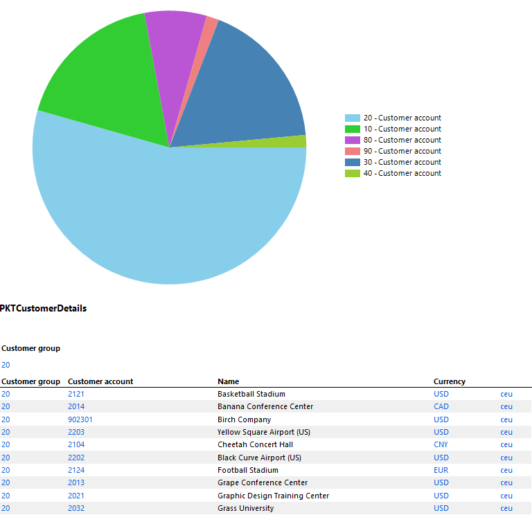 14. Now we’ll add Pie chart to our report to show total Customers per Customer Group.