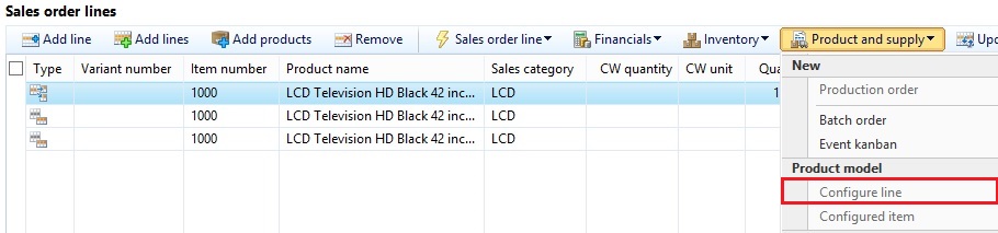 Let’s say, for example, I want to enable the Configure line button under Product and Supply menu: