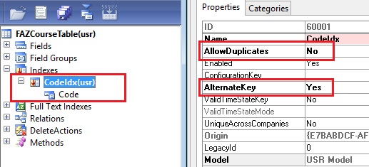 3. Set AlternateKey to Yes on the index properties.