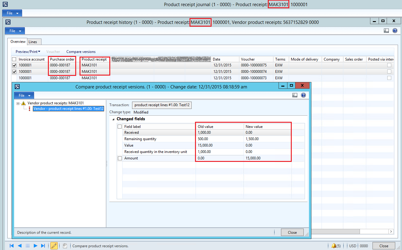 Ability to cancel product receipt journal automatically. As of now Standard AX offers manual product receipt cancellation by clicking Procurement and sourcing > Inquiries > Journals > Product receipt > Cancel.