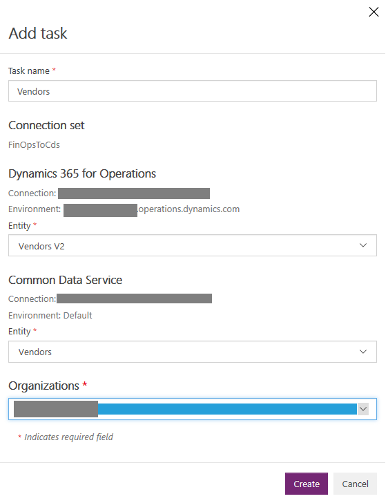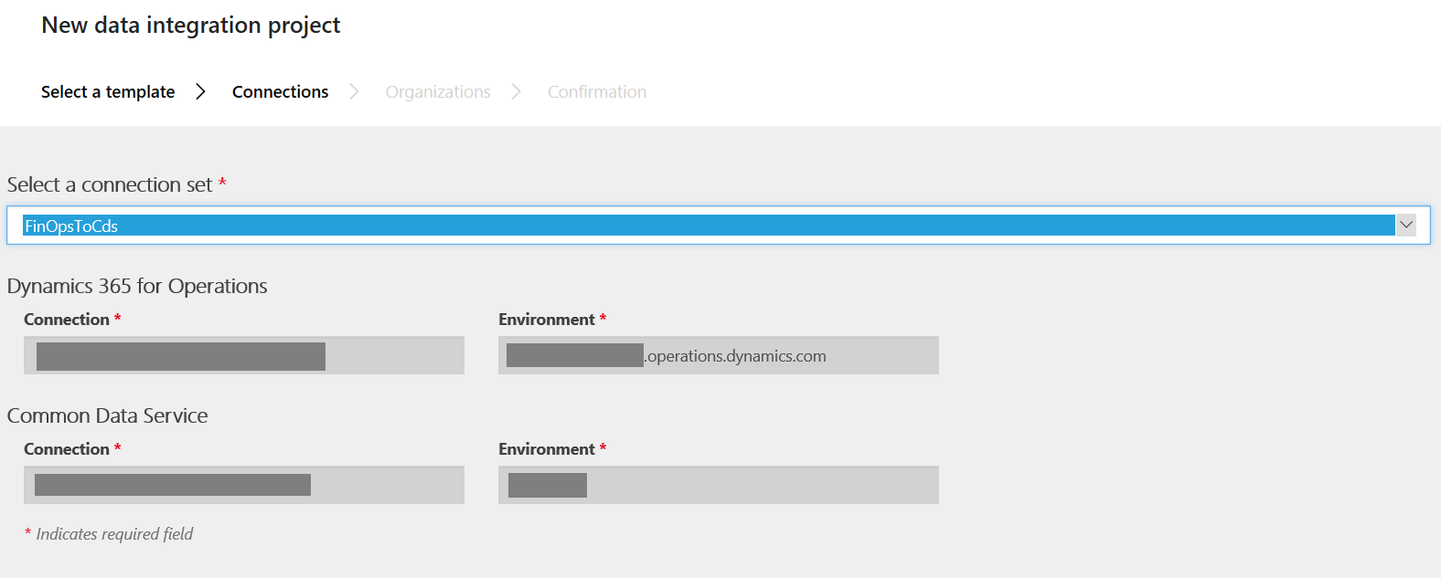 Create a new connection set in PowerApps Admin Center. Select Finance and Operations as the source environment and CDS as the target environment. Give in relevant organization details.